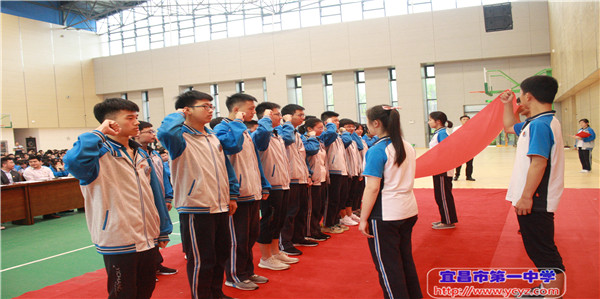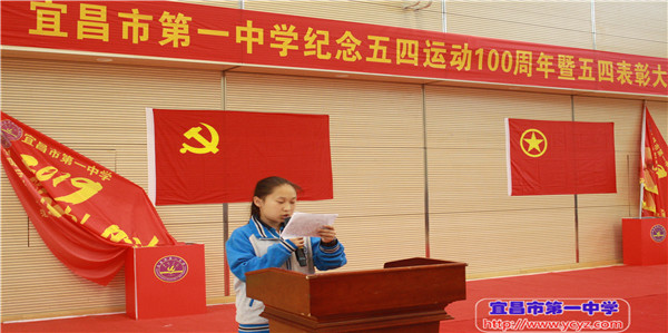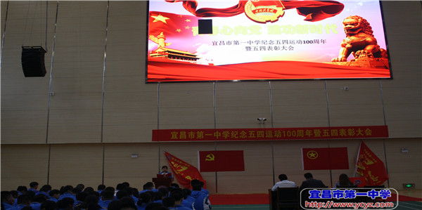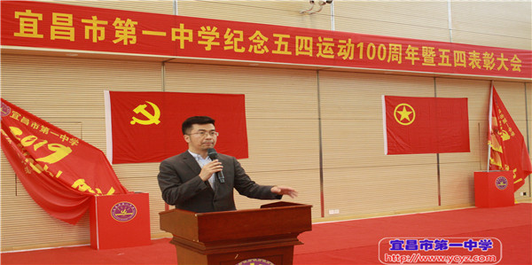 2019年5月5日下午,高二年级全体学生及学校部分青年教师齐聚体育中心,隆重举行宜昌一中纪念五四运动100周年暨五四表彰大会。校党委书记陈鹏、学工处主任潘琴、高二年级主任蔡利鹏、校团委书记余信欢出席,高二团总支副书记刘柯尔主持本次大会。