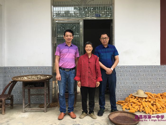 最后,大家又来到闫明校长对口帮扶的张先伏家和蔡利鹏主任对口帮扶的谢生奉家。闻讯赶来的他们,丢下了手里掰玉米和摘辣椒的农活。张先伏说:“今年国家的猪病死了不少,国家遇到了很大灾难,我今年会把猪多卖点出去,自己少留一点”。谢生奉最近身体不好,才去镇上看过病,她非常感谢国家的医疗保障政策,让她看得起病。