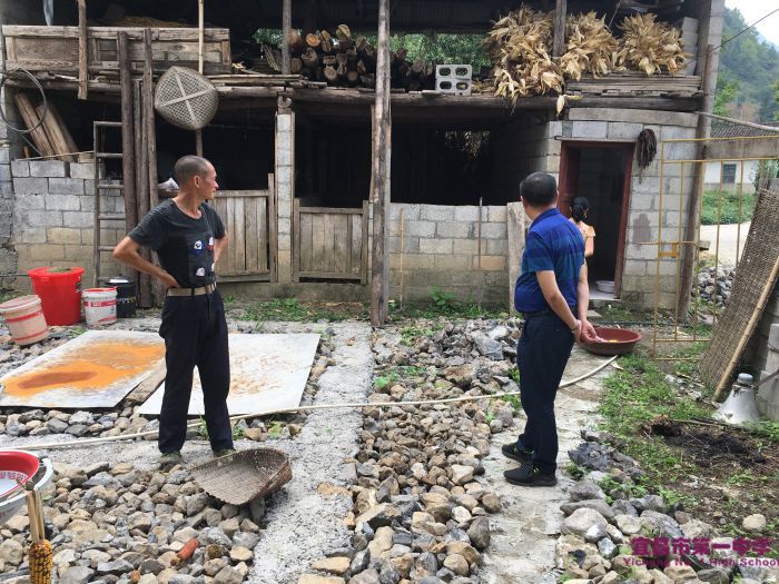 随后,我校扶贫组一行走访了李大海校长对口帮扶对象向宗柱家。向宗柱外出务工返回后,自己一人把房子装修完成,后院靠自己搬石头、背木料、砌墙、铺砖块,收拾得井井有条。他还计划在后院修一个小房子,铺上水泥。谈到后院建设,向宗柱滔滔不绝,计划周全,信心满满。