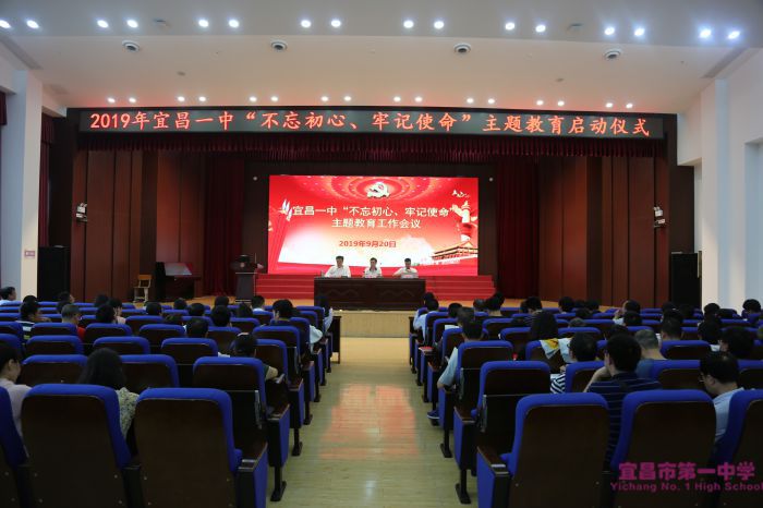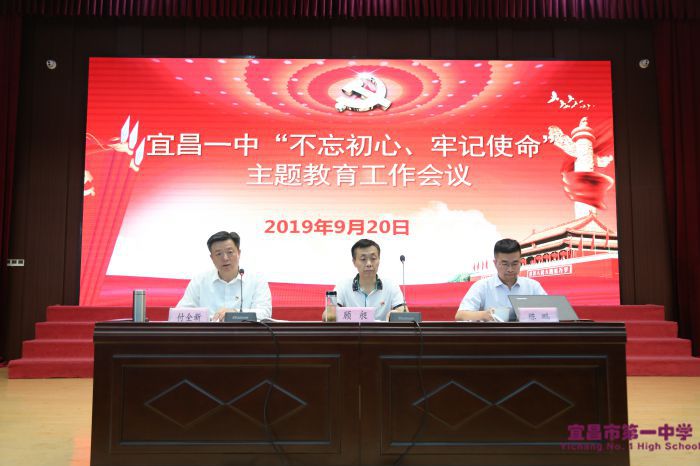 9月20日下午,宜昌一中“不忘初心、牢记使命”主题教育工作会议在墨池书院二楼报告厅召开。学校党委书记陈鹏同志作动员讲话,市委第十四巡回指导组组长顾昶同志到会指导并作重要讲话。大会由党委副书记、校长付全新同志主持。