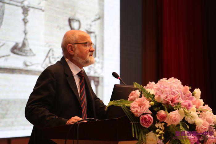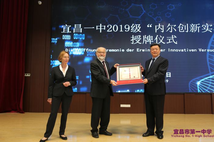 身处美丽的校园里,嘉宾们了解学校悠久的办学历史,感受学校深厚的人文底蕴,共植“友谊树”。在墨池书院二楼报告厅,埃尔文·内尔教授夫妇亲手将“内尔创新实验班”的匾牌授予我校1917、1918两个班的优秀学生代表,并将自己的诺贝尔奖证书(副本)赠送给学校,勉励我校学子努力学习,热爱科学,钻研科学,做造福人类的科技人才。