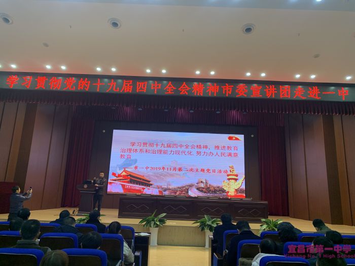 宜昌市委宣讲团成员、我校纪委书记王桃同志为全校党员宣讲十九届四中全会精神