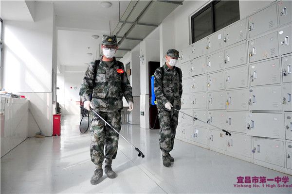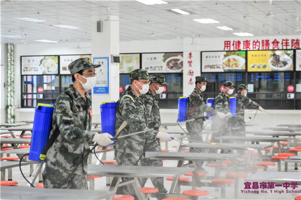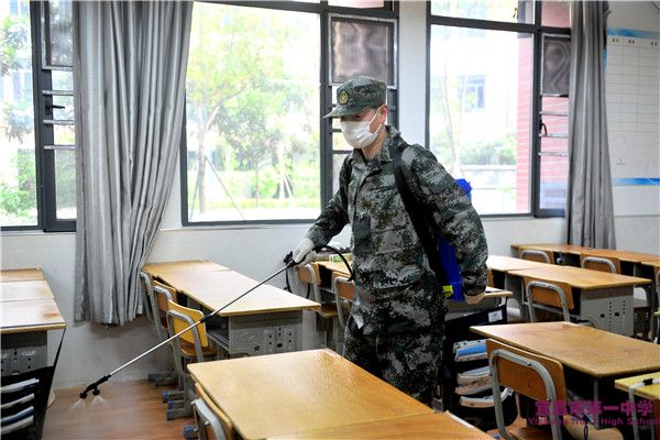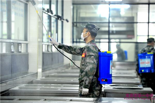 为切实保障我校广大师生的生命健康安全,4月24日,解放军某部队22名官兵来到学校,为我校进行开学前的“地毯式”防疫消杀,为学校安全顺利复课提供保障。