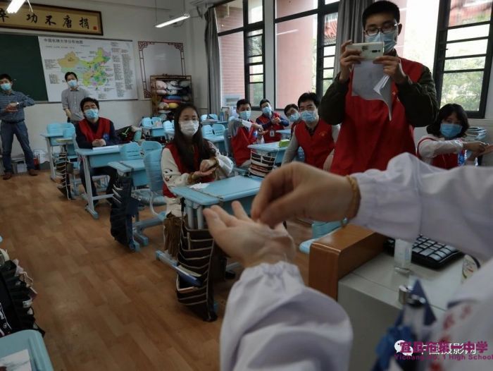 ▲4月24日,解放军61699部队用aqas新型消毒剂为宜昌一中复课开展义务消杀,这个消杀剂是军事科学院和中国科学院针对疫情联合研制的新产品,消毒效果好、对人体刺激小、环境友好。