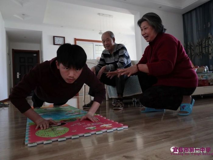 ▲1722班胡时玮(左),妈妈是医务工作者、爸爸在药厂上班,他们都在抗疫一线。春节前,妈妈把他送到爷爷奶奶家,这一住就是三个多月。这是胡时玮第一次单独与爷爷奶奶如此长的相处,懂事的他一面向着自己的目标加油,一面给爷爷奶奶留下美好的回忆。