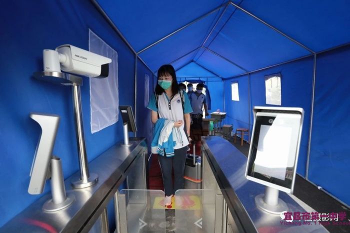 ▲学校门口安装了电子红外测温、人脸识别和门禁联动系统,既保证防疫,也提高了人员通过效率。