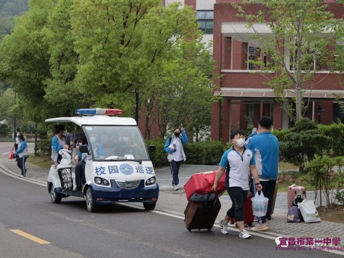 ▲校园巡逻车帮助住宿学生运送行李。