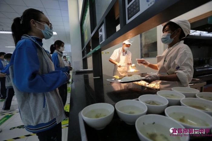 ▲学校为同学们精心配制了营养餐。