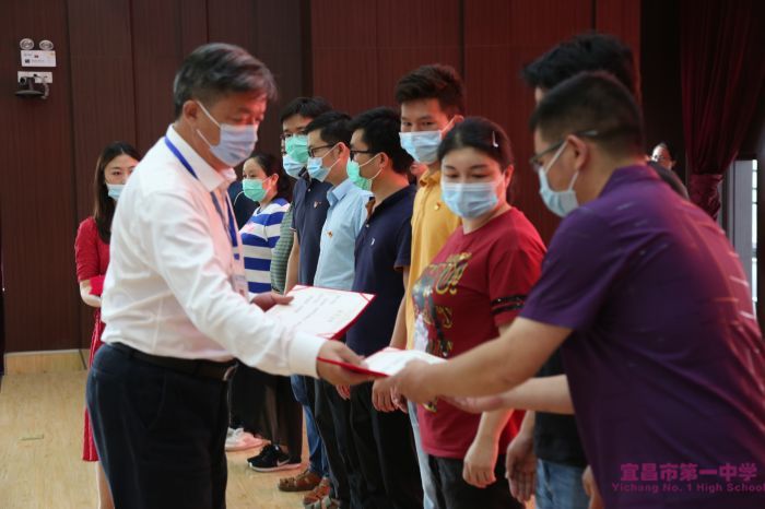 党委委员、工会主席郭永寿同志宣读了学校党委表彰文件,熊剑等35名党员被授予学校“优秀共产党员”称号;舒方帅等12名同志被推荐表彰为市教育局优秀党员;吴海涛、朱圣柱等2名同志被推荐表彰为市教育局优秀党务工作者;第二党支部被推荐表彰为市教育局先进基层党组织。党委副书记、校长付全新同志为学校优秀共产党员颁奖,并与他们合影留念。