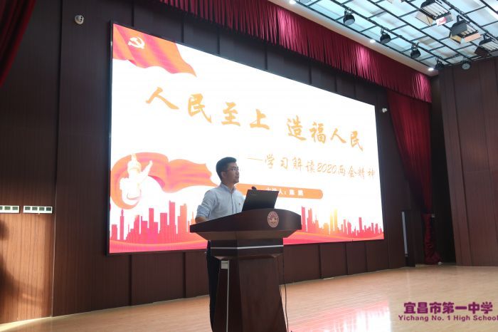 之后,党委书记陈鹏同志围绕“战疫情,感党恩,强自信”主题,主讲题为《不忘初心、增长本领,以卓有成效的党建工作引领学校高质量发展》的党课,立足“人民至上、造福人民”的根本出发点,简要解读了2020年全国“两会”精神,充分肯定了在抗疫保学中,我校广大党员干部所表现出来的责任和担当。他还结合本次全面从严治党专题培训和学校党建工作实际,提出党员干部一是要不忘初心,坚持立德树人,办好人民满意学校;二要不断增长本领,做有深度的杂家,持续推进各项改革;三是要对照学校章程设定目标,努力实现一中高质量发展;四是要创新党建品牌,围绕中心抓党建,抓好党建促发展,以卓有成效的党建工作引领学校高质量发展。