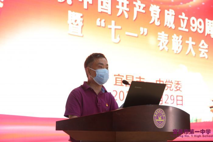 随后,优秀党员代表唐其斌同志发言,他回顾了疫情期间坚守岗位,为抗疫保学忘我工作的经历,朴实的发言,平凡的事例,充分展现了特殊时期一名优秀共产党员忠诚党的教育事业的执着与情怀。