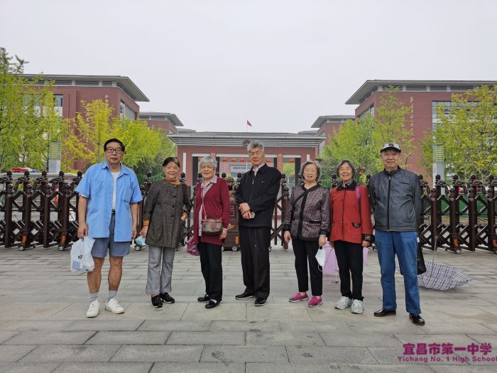 认护结束后,校友们乘坐校内观光车,兴致勃勃地参观了新一中的校园,并在校大门口合影留念。