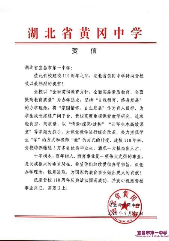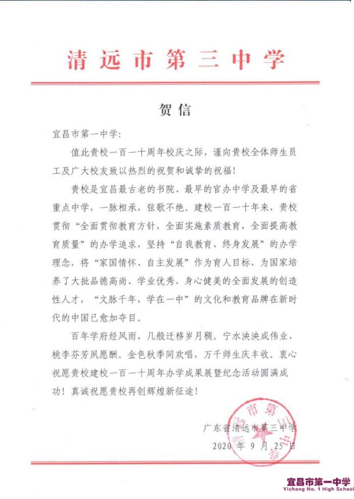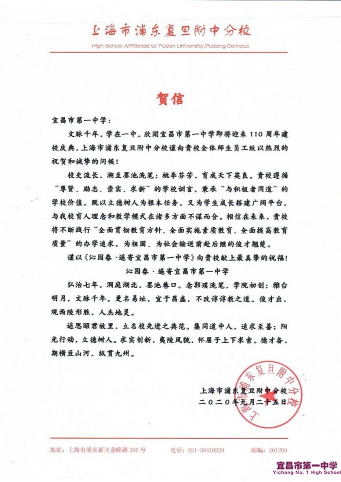 【校庆贺信】浦东复旦附中分校、清远市第三中学、黄冈中学-3200威尼斯vip