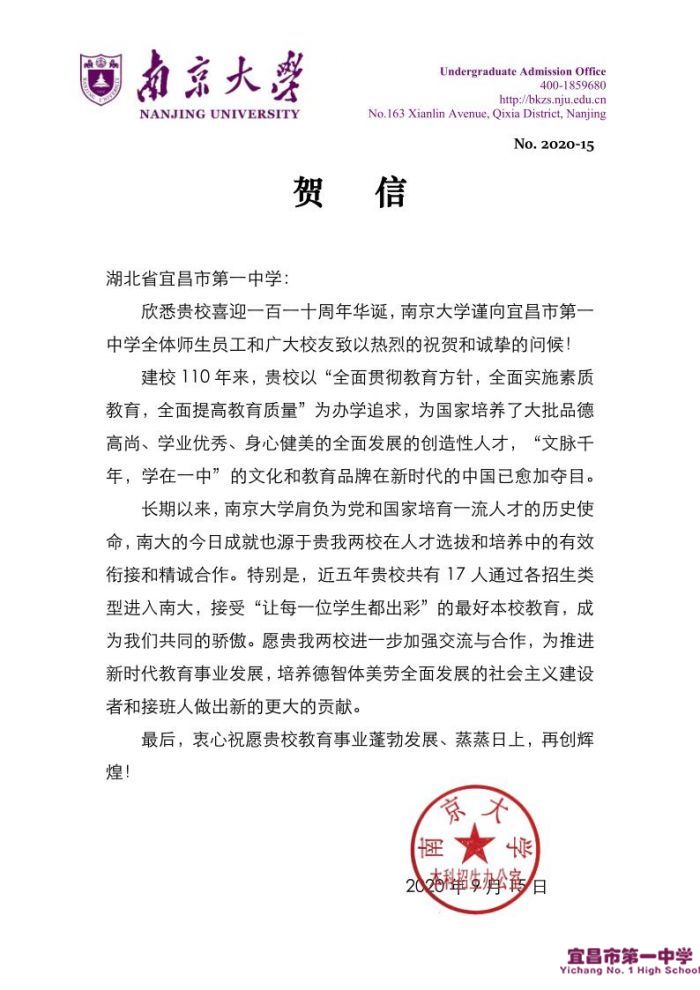 【校庆贺信】华中师范大学、南京大学、天津大学