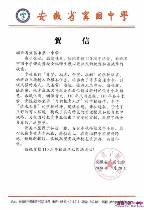 【校庆贺信】安徽省宁国中学、安阳市第三中学、惠州大亚湾经济技术开发区第一中学-3200威尼斯vip