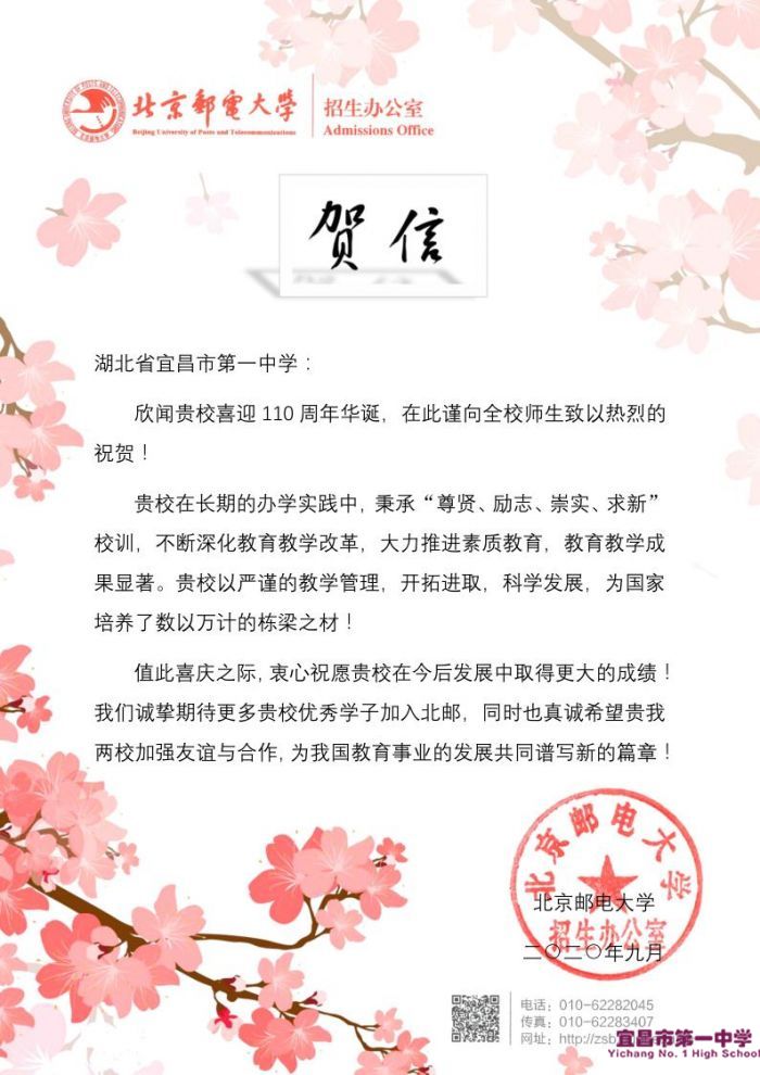 【校庆贺信】南开大学、北京邮电大学、湖北大学