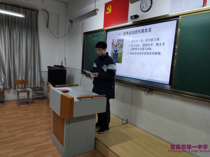 会议由学工处副主任陈少文老师主持,他首先宣布了上半学期在学习和训练中踏实认真,作风优秀,表现突出的“体育标兵”获奖名单。随后,优秀运动员代表1913班岳天昊同学做了关于学习和运动队训练的经验分享,勉励大家一起努力,圆梦一中。会上,陈少文主任对个别运动队员的不良行为也进行了通报批评,并对春季学期高水平运动队员的训练时间、行为规范和文化课学习提出了具体的要求,希望所有的运动员学习榜样,严格自律,力争2021年取得更大的进步。