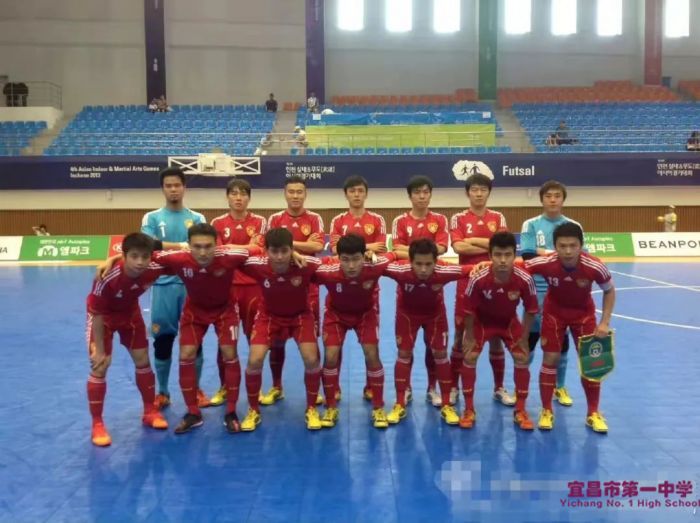 2013年,作为队员(后排左一),代表中国五人制足球国家队参加亚洲室内运动会。