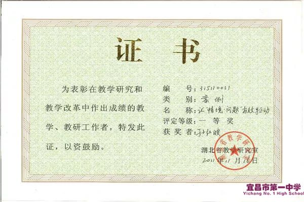 孙老师将自己的教学经验毫无保留地分享给青年教师,在他的指导下,许多青年老师在各类比赛中脱颖而出,曾指导王春艳老师获“湖北省高中数学青年教师优质课竞赛”一等奖;指导李智伟老师获“宜昌市高中数学青年教师优质课竞赛”一等奖、“湖北好课堂”高中数学展评一等奖。