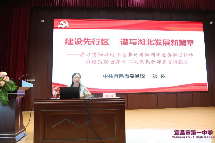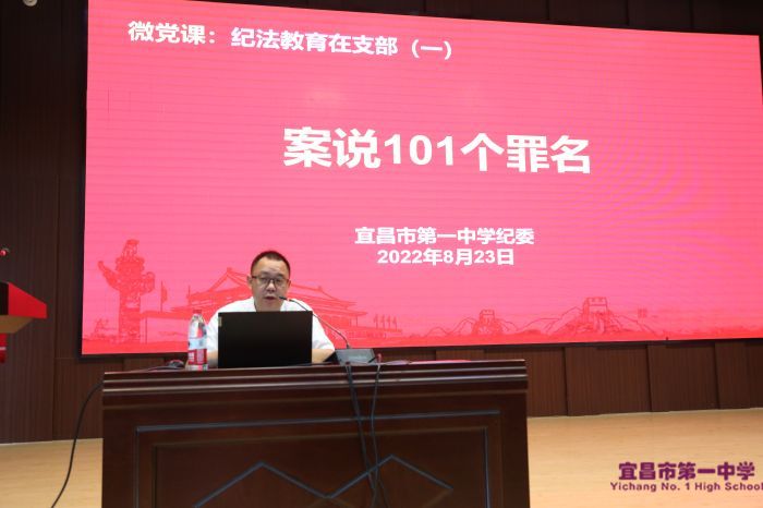 在集体重温入党誓词后,中共宜昌市委党校党性教育教研室主任、副教授、市委宣讲团成员姚薇同志作了题为《建设先行区,谱写湖北发展新篇章》的专题宣讲报告。在这次的八月主题党日中,增加了“纪法教育在支部”微党课环节,学校纪委书记闫明以《案说101个罪名》为主题进行了授课。