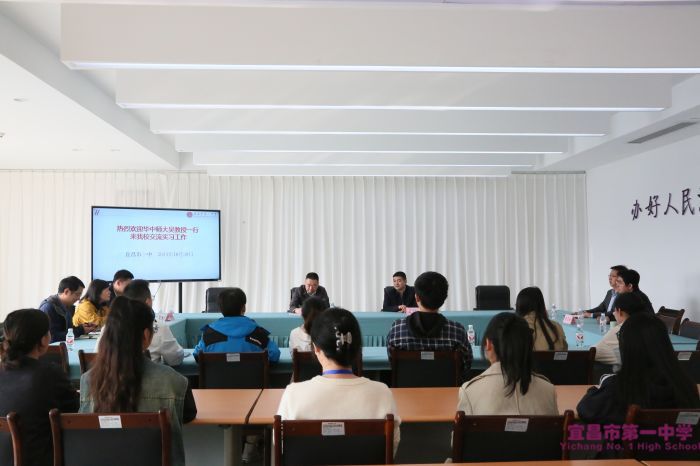 首先由我校校长蔡利鹏致欢迎辞,对交流团一行的到来表示热烈欢迎并详细介绍了学校的办学历史及未来的办学愿景。蔡校长表示,华中师范大学与宜昌市一中的合作前景广阔,在资源交流、人才培养等方面大有可为。