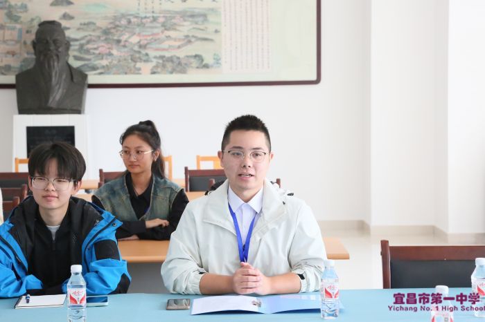 教育实习队队长向叙贵作为实习生代表发言。他详细介绍了截至当前的教育实习情况,涵盖教学实习、班主任实习及其他相关工作。向叙贵对宜昌市一中领导和指导老师的悉心指导表达了诚挚感激,同时也向华中师范大学的各位领导和老师们致以衷心感谢。他还坚定地表示,全体实习队员将以更加饱满的热情、更加严谨的态度投入到实习工作中,圆满完成实习任务,不辜负学校和老师们的期望。