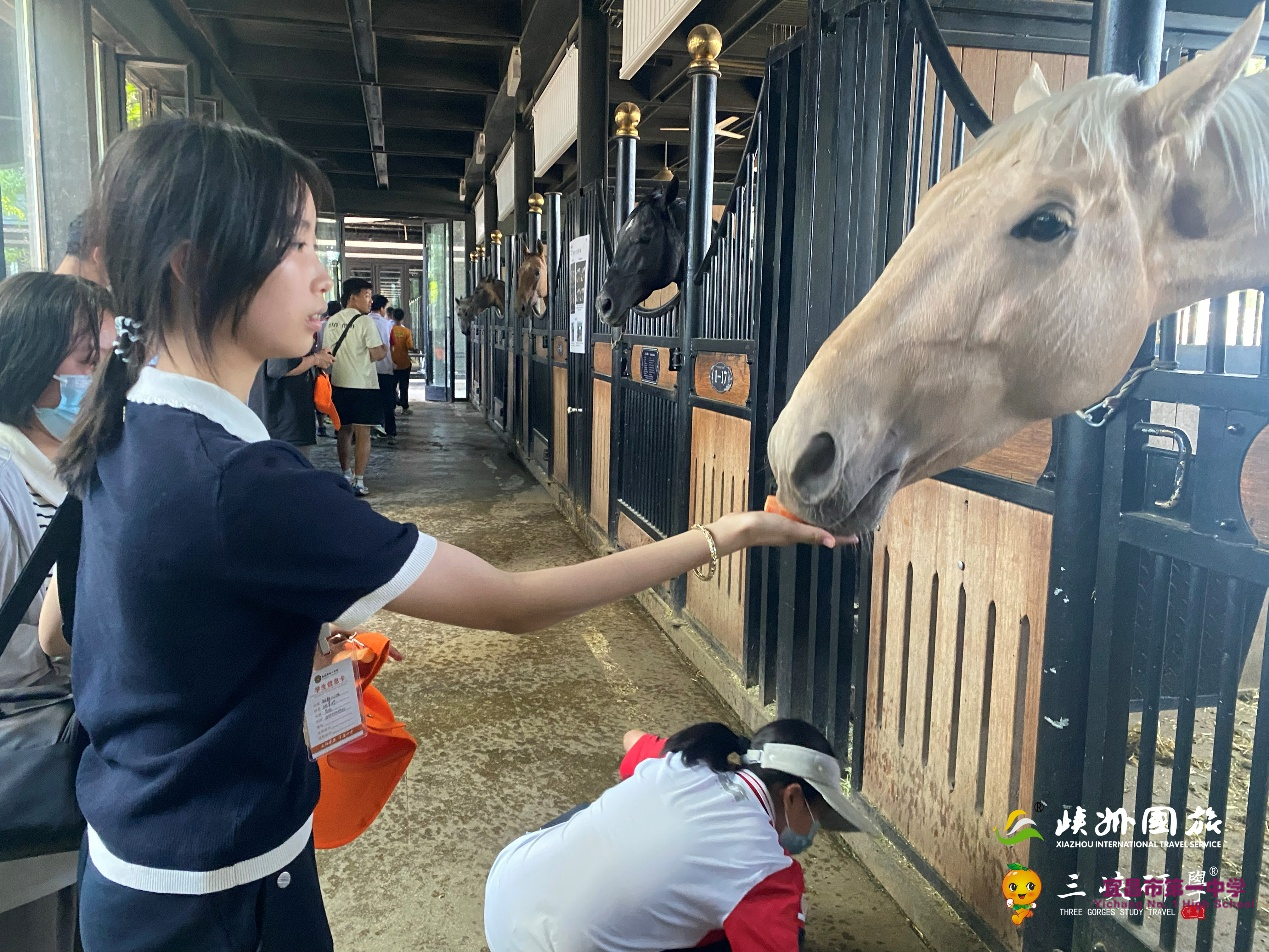 5月15日上午,在新疆地理标志产品展馆,师生观摩从棉田采摘到纺织成衣的全产业链展示。智能农机模型、长绒棉标本与自动化纺纱线让课本知识跃然眼前。同学们换上具有新疆特色的服饰,在t台中走秀,在“直播间”带货,培养了自信与表达能力。下午走进野马古生态园,学生们近距离观察“汗血宝马”的飒爽英姿,用胡萝卜投喂汗血马,聆听马文化如何贯穿丝路文明;硅化木森林、陨石陈列馆则揭开亿万年地质变迁的奥秘。研学导师结合“普氏野马”保护案例,阐释生态修复的当代使命。晚上,在结营仪式中,副校长舒方帅总结了前几日的研学之旅,并表示对创新班同学们的期盼与厚爱,来自创新1班的刘星汉同学作为学生代表发言,两位班主任将沉甸甸的结营证书发放给同学们,同学们表示不仅收获了学习,也收获了开心。