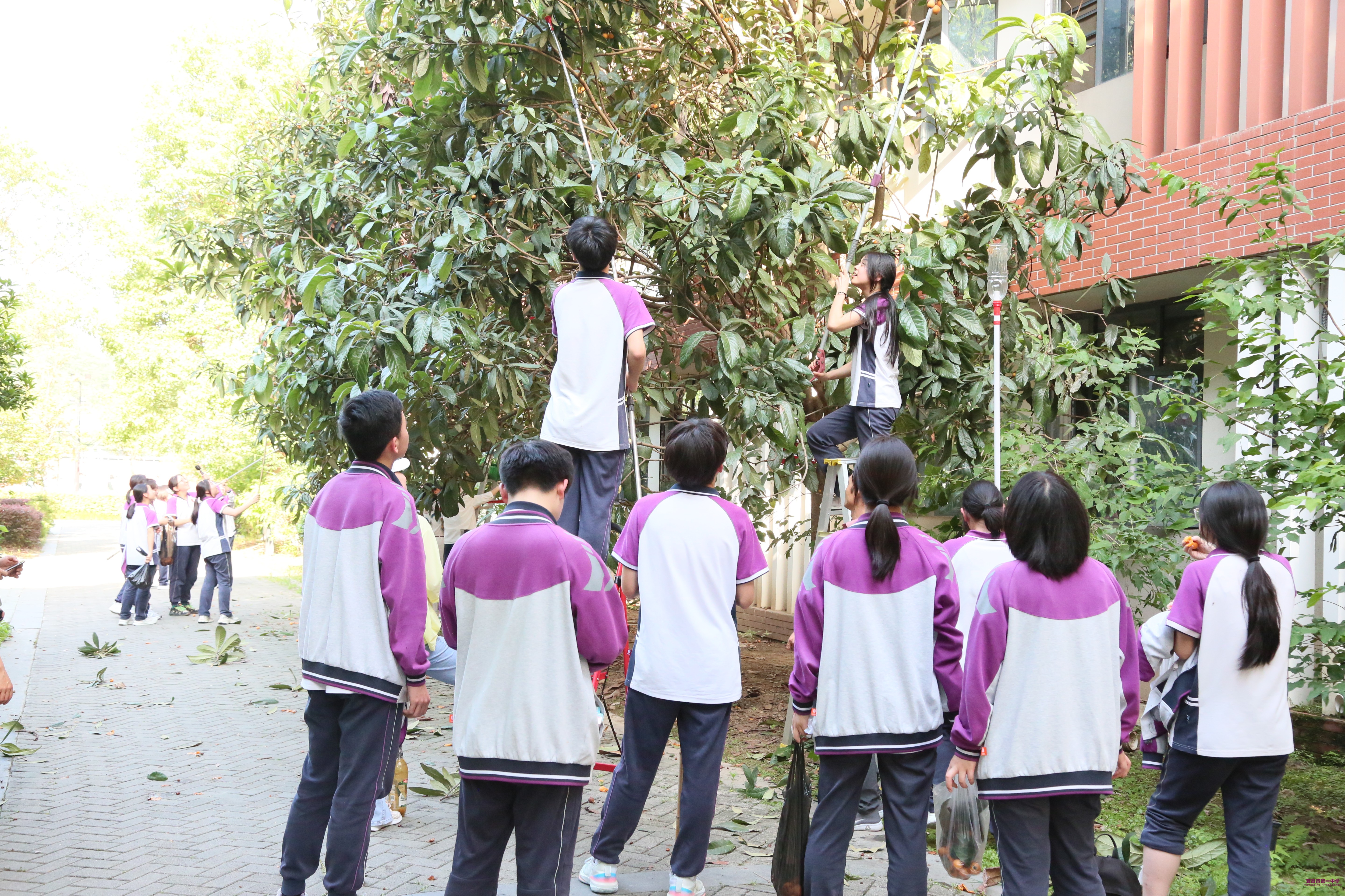 同学们手持工具,小心翼翼摘下成熟的枇杷。有人攀梯采摘,有人分拣装筐,劳动协作间悄然领悟"独木难成林"的深意。采摘后,大家纷纷把自己采摘的第一份果实,送到平日默默付出的老师手中。三年以来,任课教师在讲台上倾囊相授,后勤老师在身后默默守护成长,同学们用这份甜蜜的枇杷,表达对师长们的深深谢意。这一小小的举动,不仅是对传统美德的传承,更让感恩的种子在同学们心中发芽。