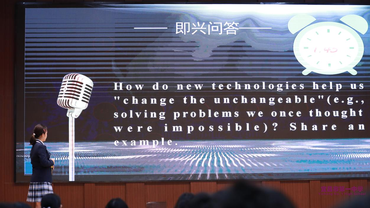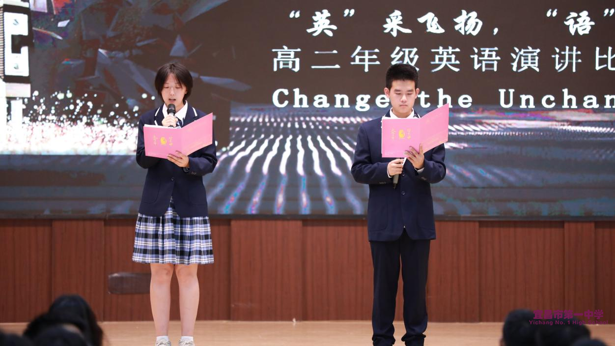 此次决赛经过班级预赛、年级初赛后,共有17名参赛选手就“change the unchangeable”进行3分钟主题演讲和即兴问答,200余名学生代表现场观摩学习,全体高二年级学生在教室通过直播观赛。我校副校长鲍同强、教务处主任赵勇、校团委书记陈少文及高二年级主任唐志海在比赛现场观看同学们的精彩表演。本次大赛的评委由5名英语教师和2名学生代表担任,来自2320班的廖佳琦和黄新喻同学担任大赛主持人。