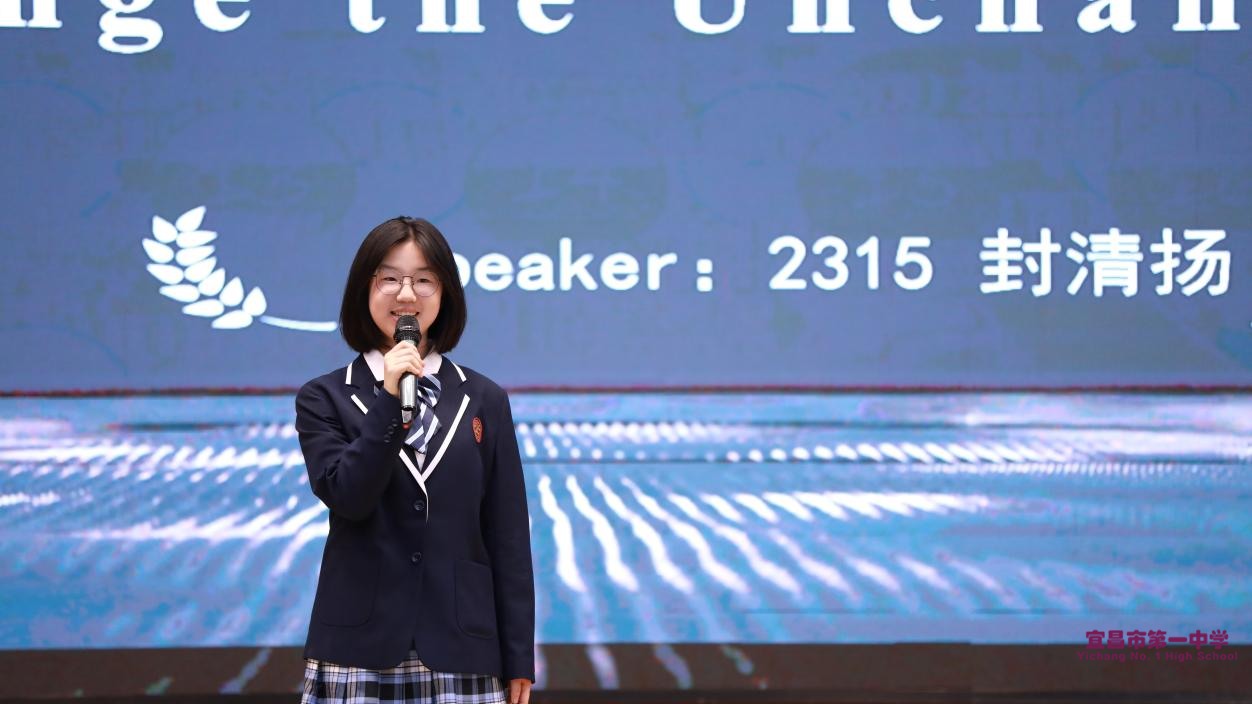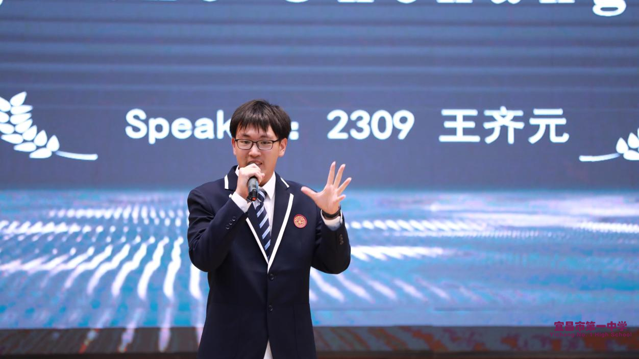 在大赛正式开始之前,来自2410班的赵戴萱同学(第21届 “外研社杯” 全国中学生外语素养大赛决赛全国特等奖得主)为大家分享了她的比赛经历。她鼓励同学们在逐梦的道路上,勇敢前行,不断超越自我!