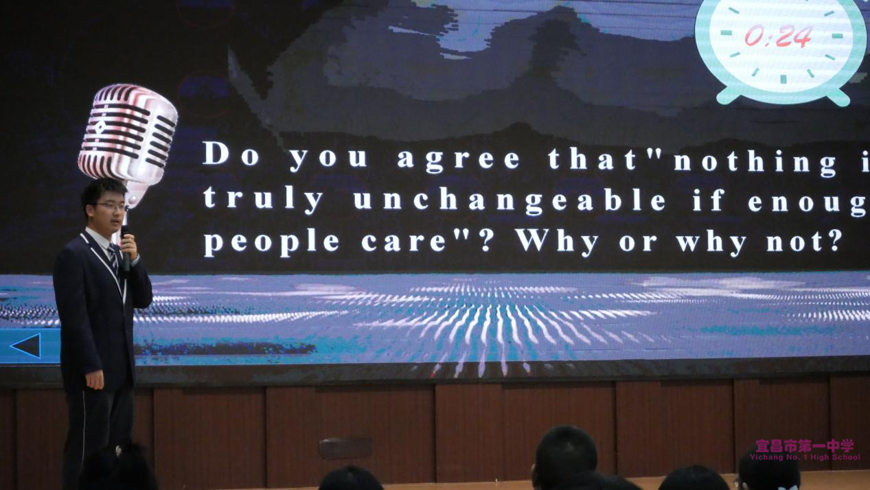 在主题演讲环节中,选手们就本次大赛指定话题“change the unchangeable”发表了自己独到的见解,或是从自己的个人经历出发以小见大,或是旁征博引名人轶事,对自己的立场进行了深入浅出的论证。