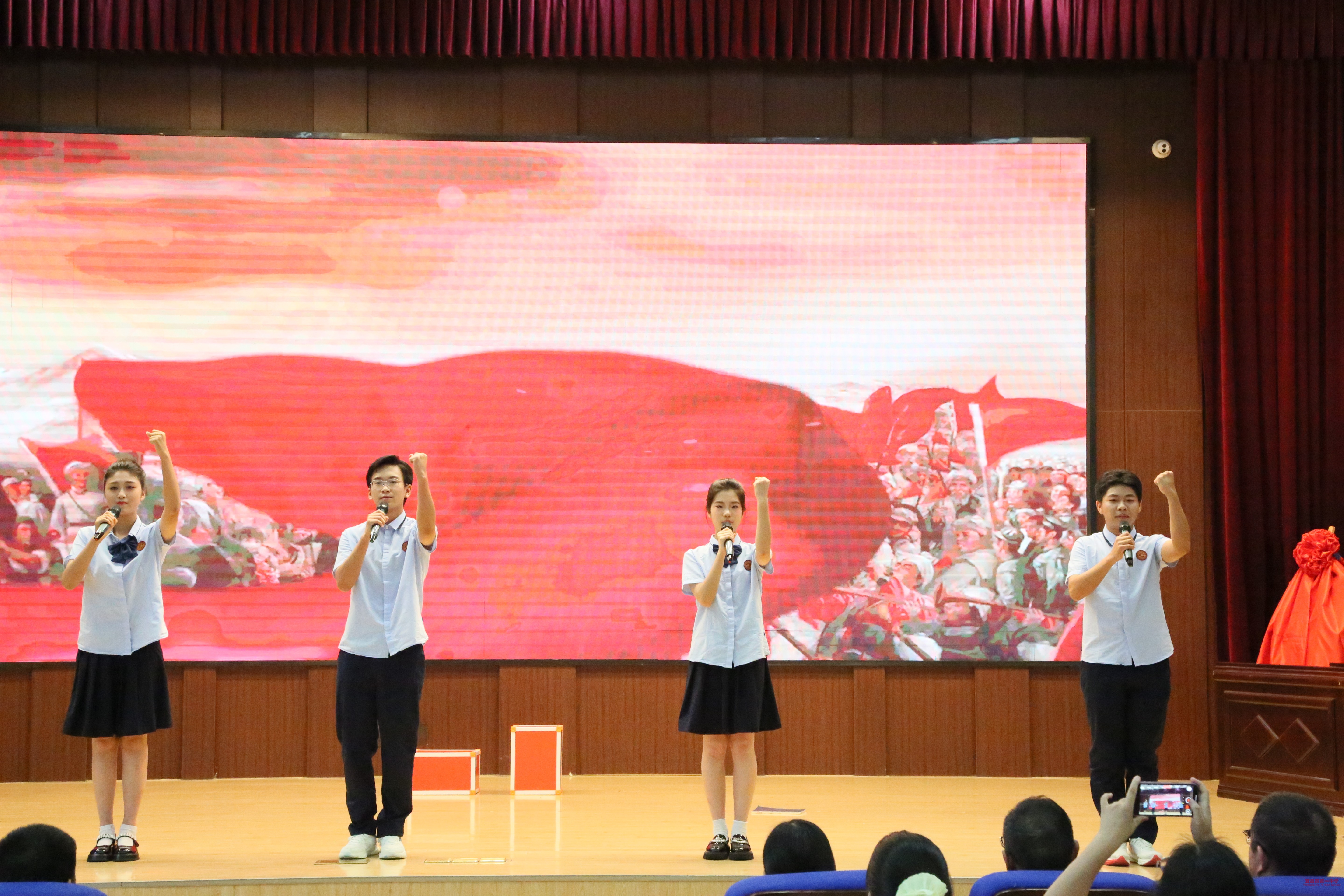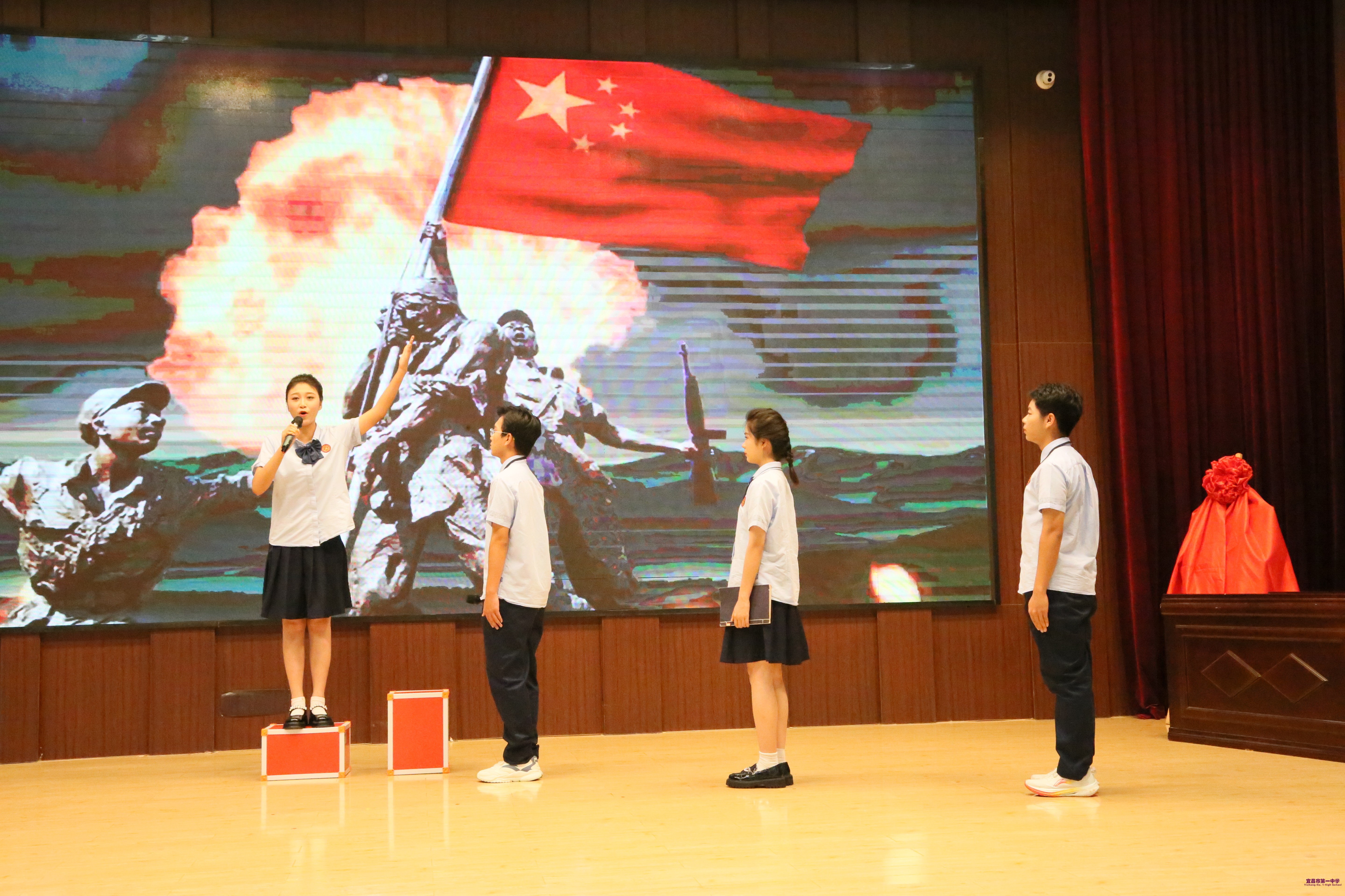 大会在庄严的国歌声中拉开帷幕。董晓耕、李欣怡、高梓铭、张心宜四位同学带来情景剧《英雄》,他们用自己铿锵有力的声音表达了一中学子对英雄的无限缅怀,对历史的崇高敬意,对未来的坚定信心。