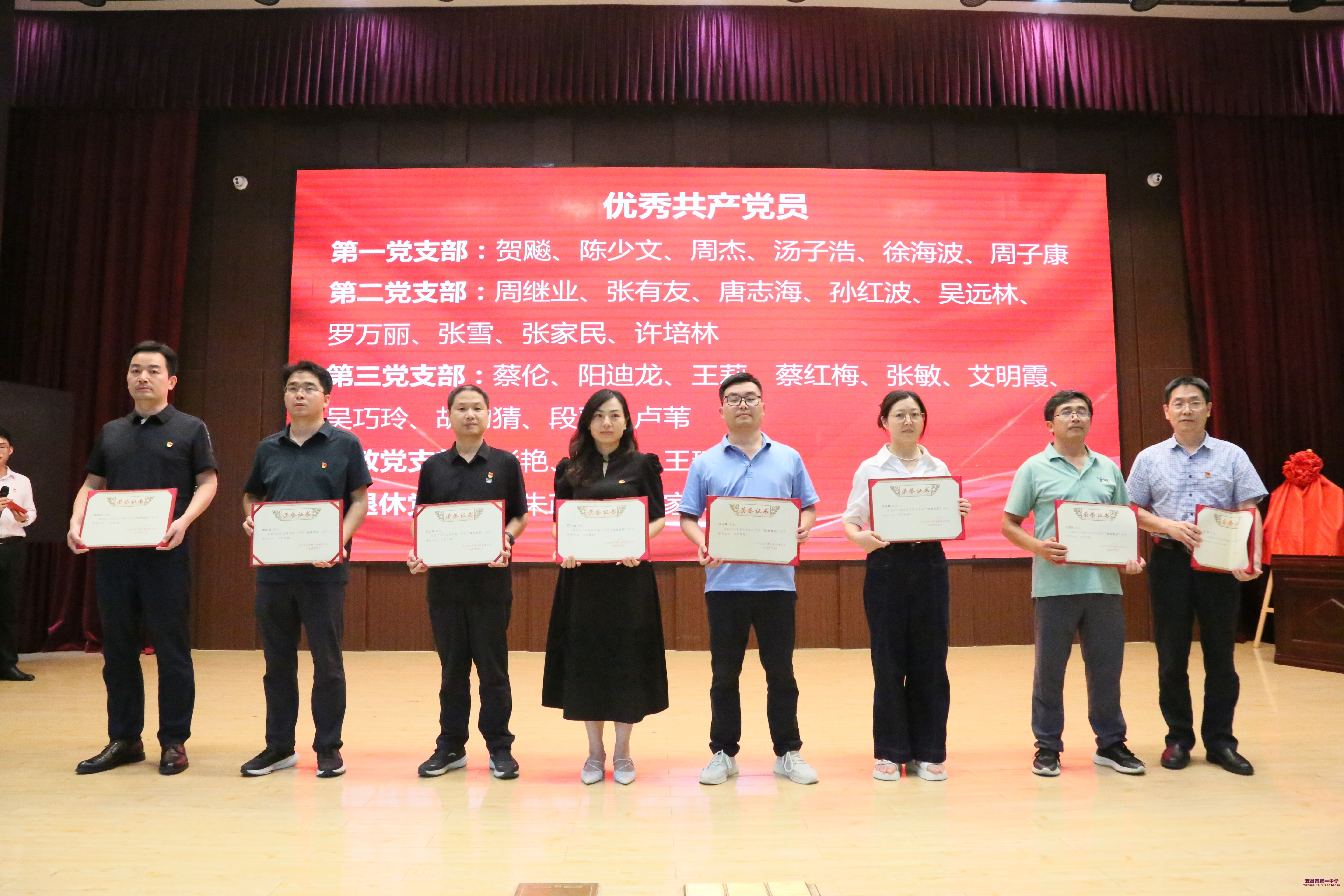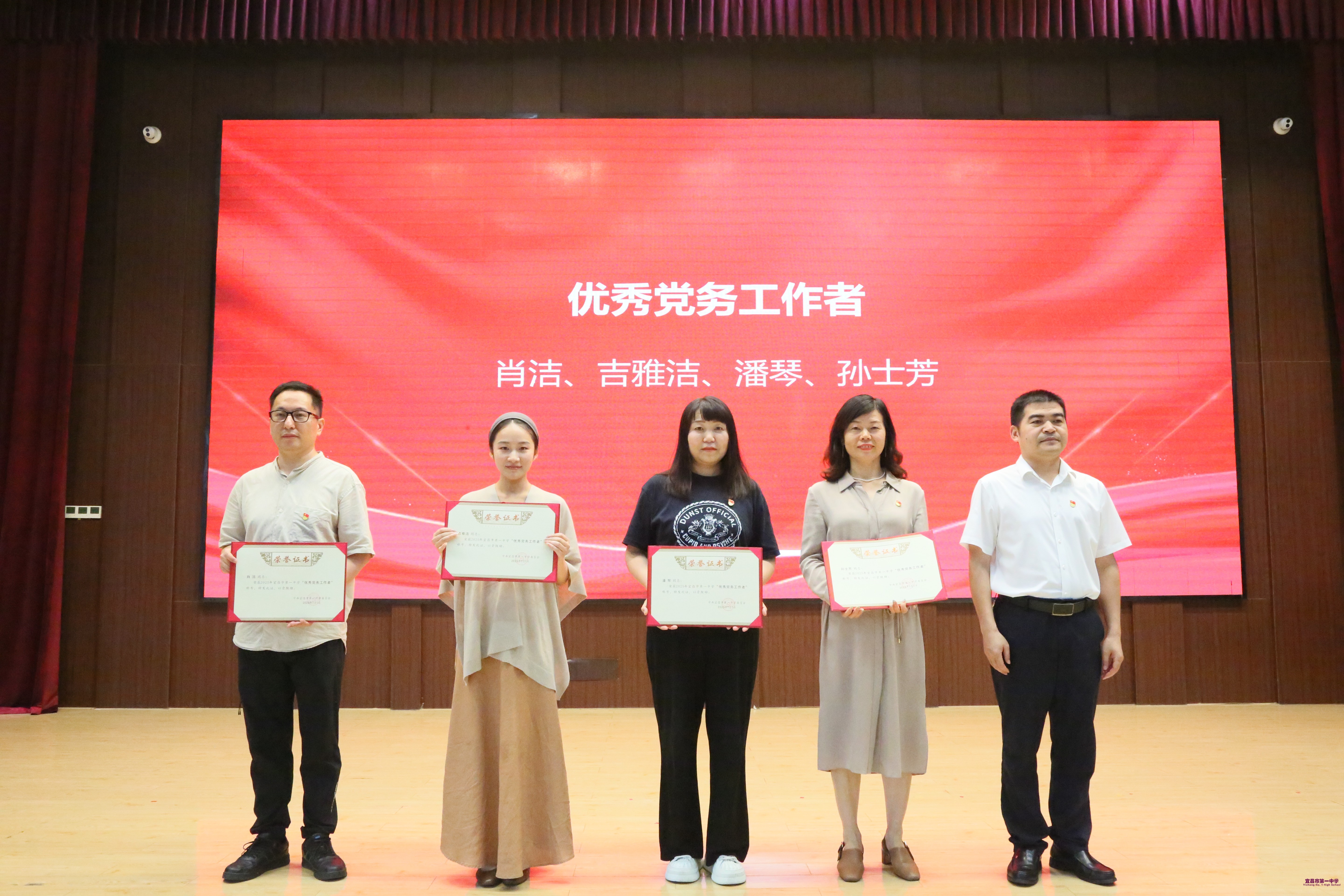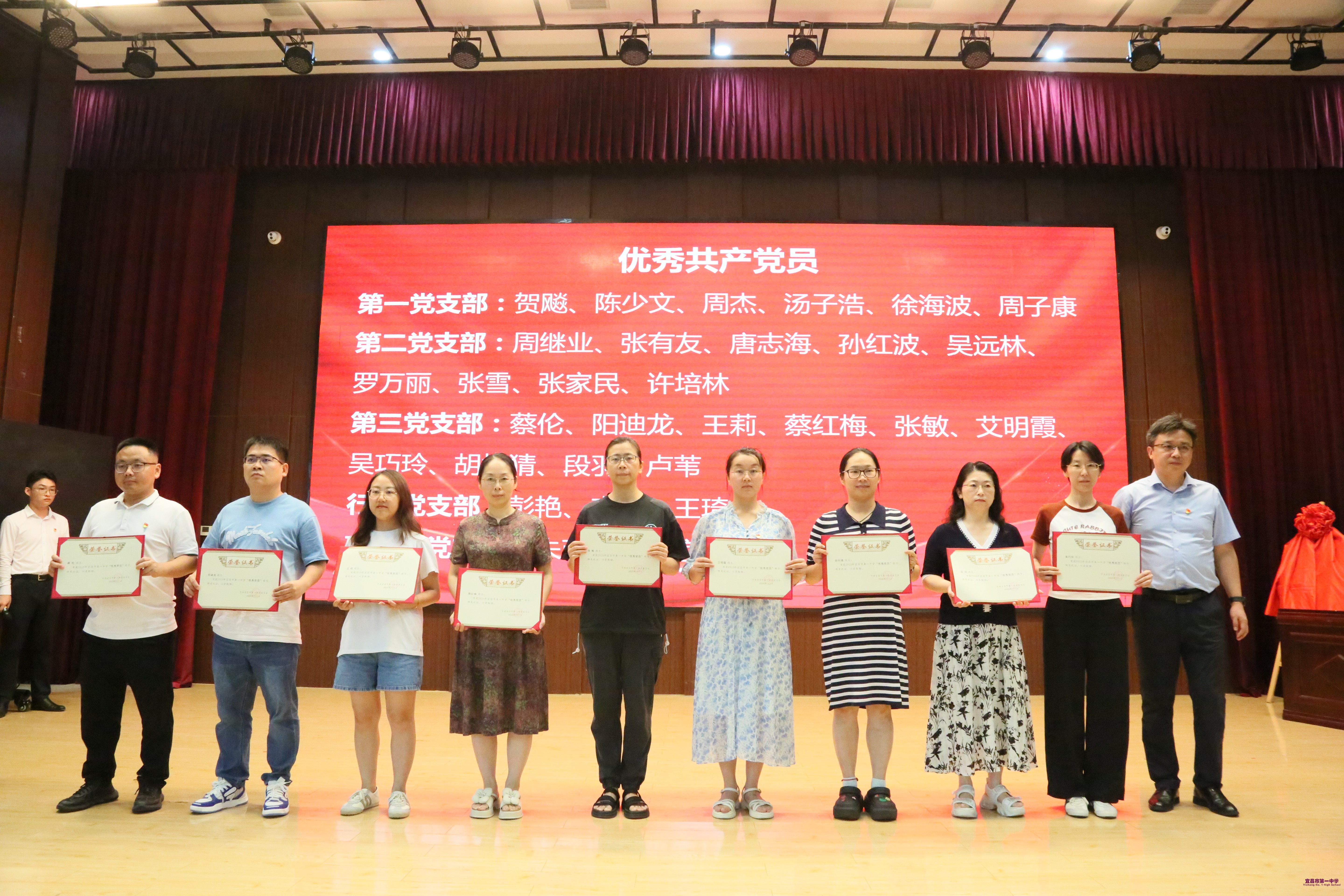 随后,纪委书记闫明宣读 《中共宜昌市第一中学委员会关于表彰优秀共产党员和优秀党务工作者的决定》,授予艾明霞等30人“优秀共产党员”称号,吉雅洁等4人“优秀党务工作者”称号。校长蔡利鹏,副校长鲍同强、舒方帅、余信欢,工会主席黄文坚,分别为受表彰同志颁奖。