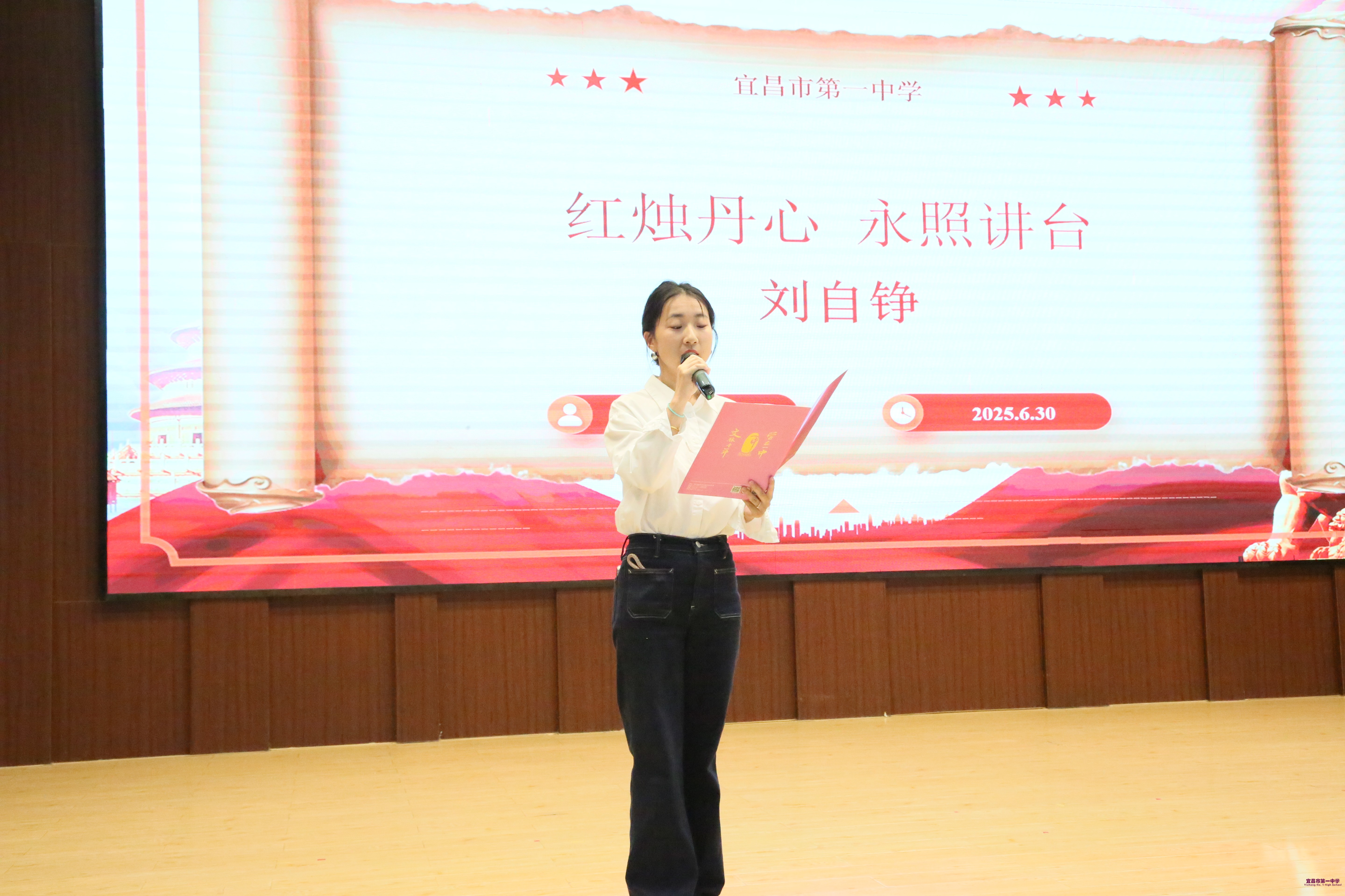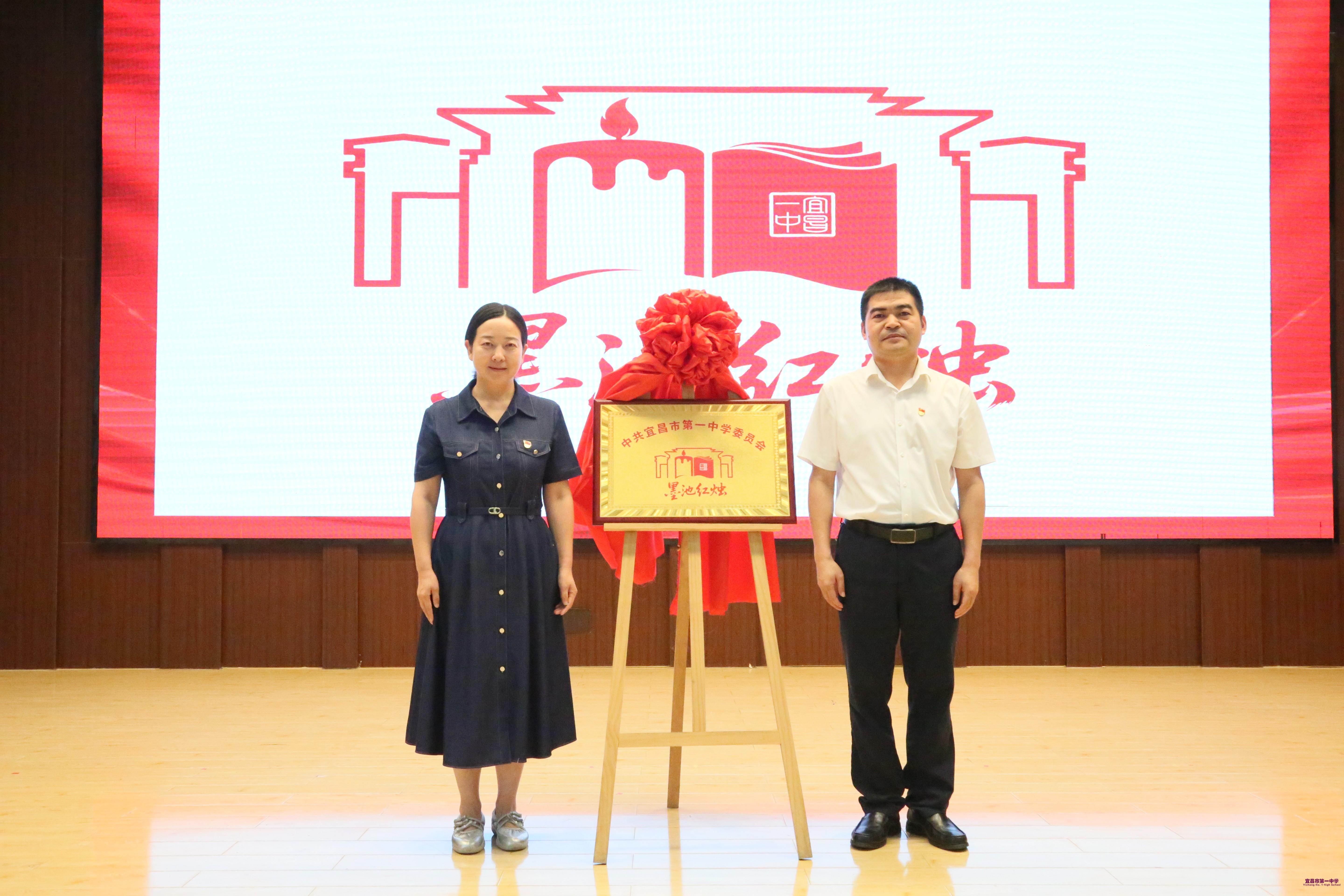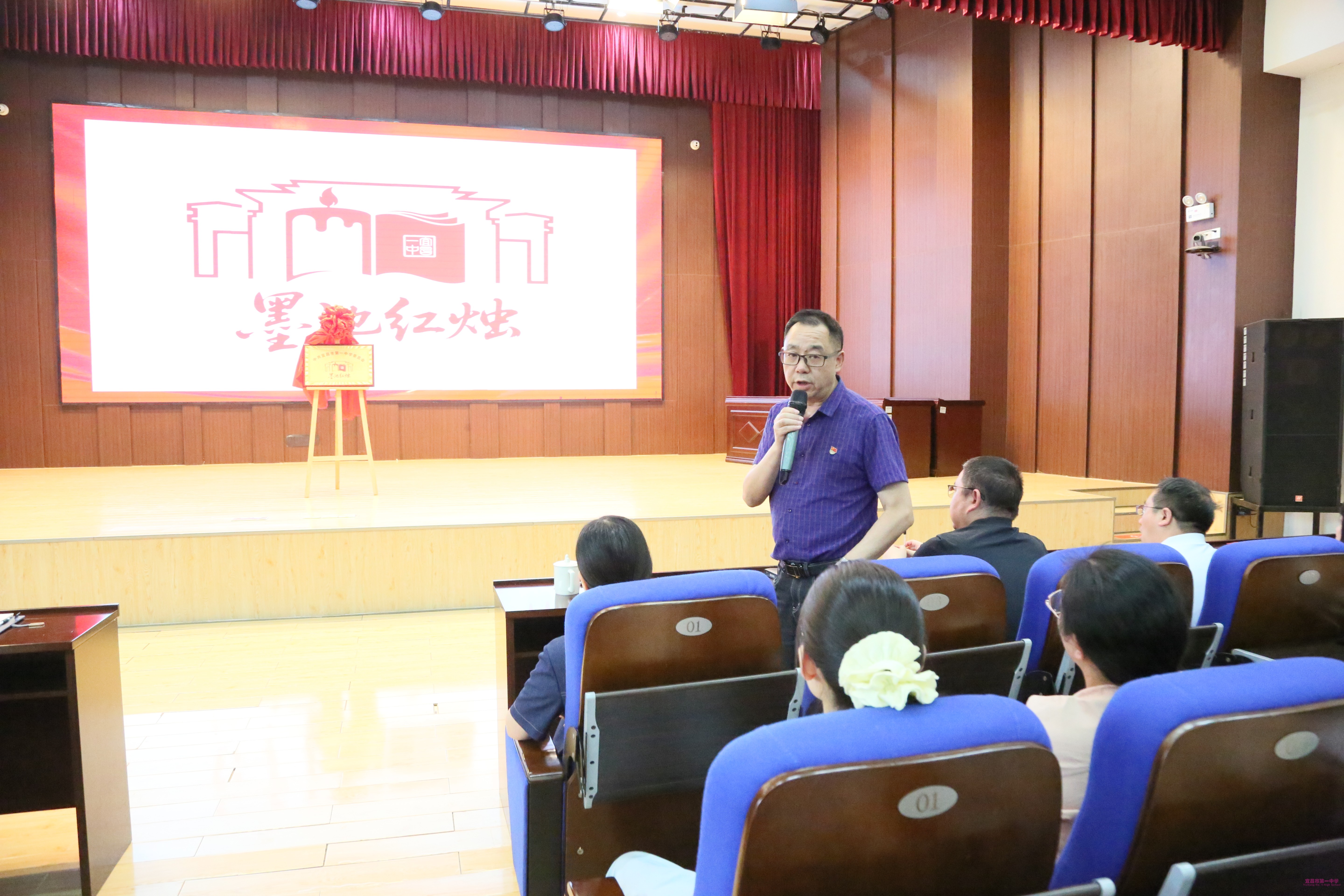 百年墨池承载着厚重的文化底蕴,也赓续着无数一中党员的初心与奉献,随后,大会举行“墨池红烛”党建品牌发布,党委书记谭小红、校长蔡利鹏共同为“墨池红烛”党建品牌揭幕。纪委书记闫明现场为全体党员讲述党建品牌背后的故事。随后,行政支部书记靳宇、英语教师彭盈分别带来了苏震、刘自铮两位老党员的感人故事。作为宜昌市一中的一员,他们或投身革命,或矢志教育,在不同的人生轨迹里,他们都用自己的一言一行诠释着一名党员的忠诚,一名教师的初心。