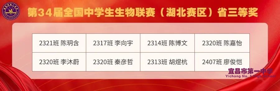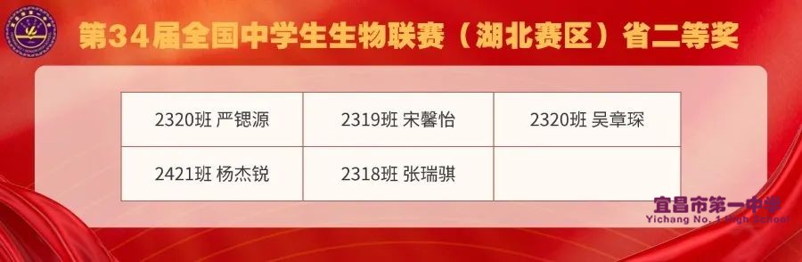学校支持,家长配合,教师善教,学生乐学,是一中学子取得优异成绩的内因。相信在宜昌市一中专业的教练团队、完备的课程体系、强大的平台支持、优质的后勤保障、深远的赋能影响下,将为各学科竞赛的发展提供肥沃的土壤!未来将取得更多、更优异的成绩,回报家长、社会的信任和认可!