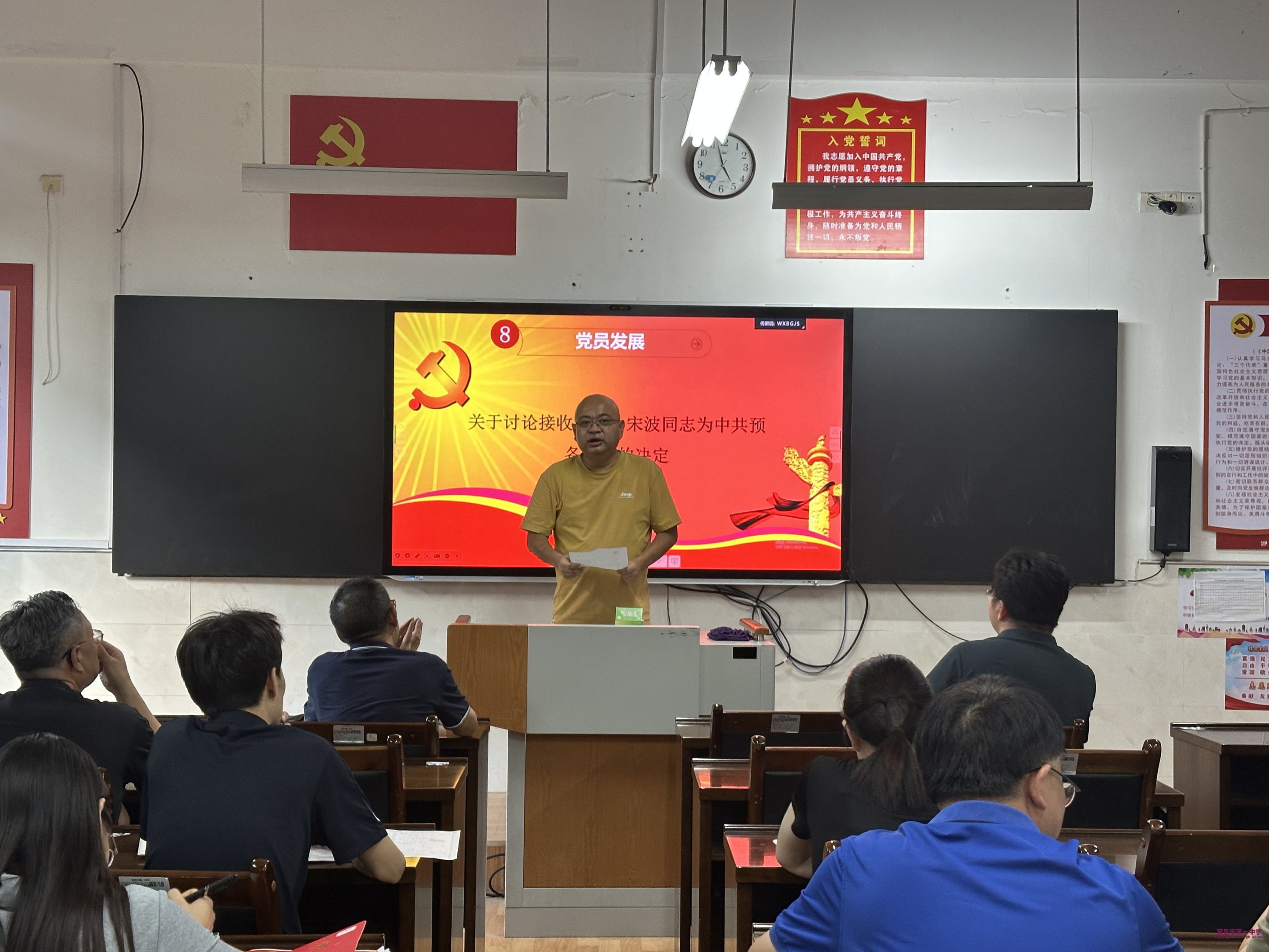会议最后,全体党员就接收覃彬、宋波同志为预备党员展开热烈讨论。两位发展对象在思想汇报中彰显信仰纯度,在实践磨砺中印证担当本色。经支部审议并全员表决通过,新鲜血液注入组织肌体。新党员的加入,标志着先锋队伍再扩容,教育攻坚力量再强化。